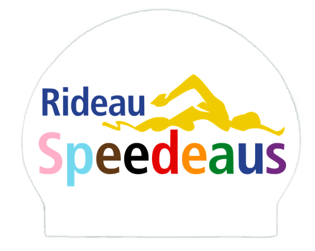 Make a splash in the pool with your own Rideau Speedeaus swim cap! These are silicone one-size-fits-all caps with the Rideau Speedeaus logo on a white background. Great for protecting your hair and showing your team spirit.